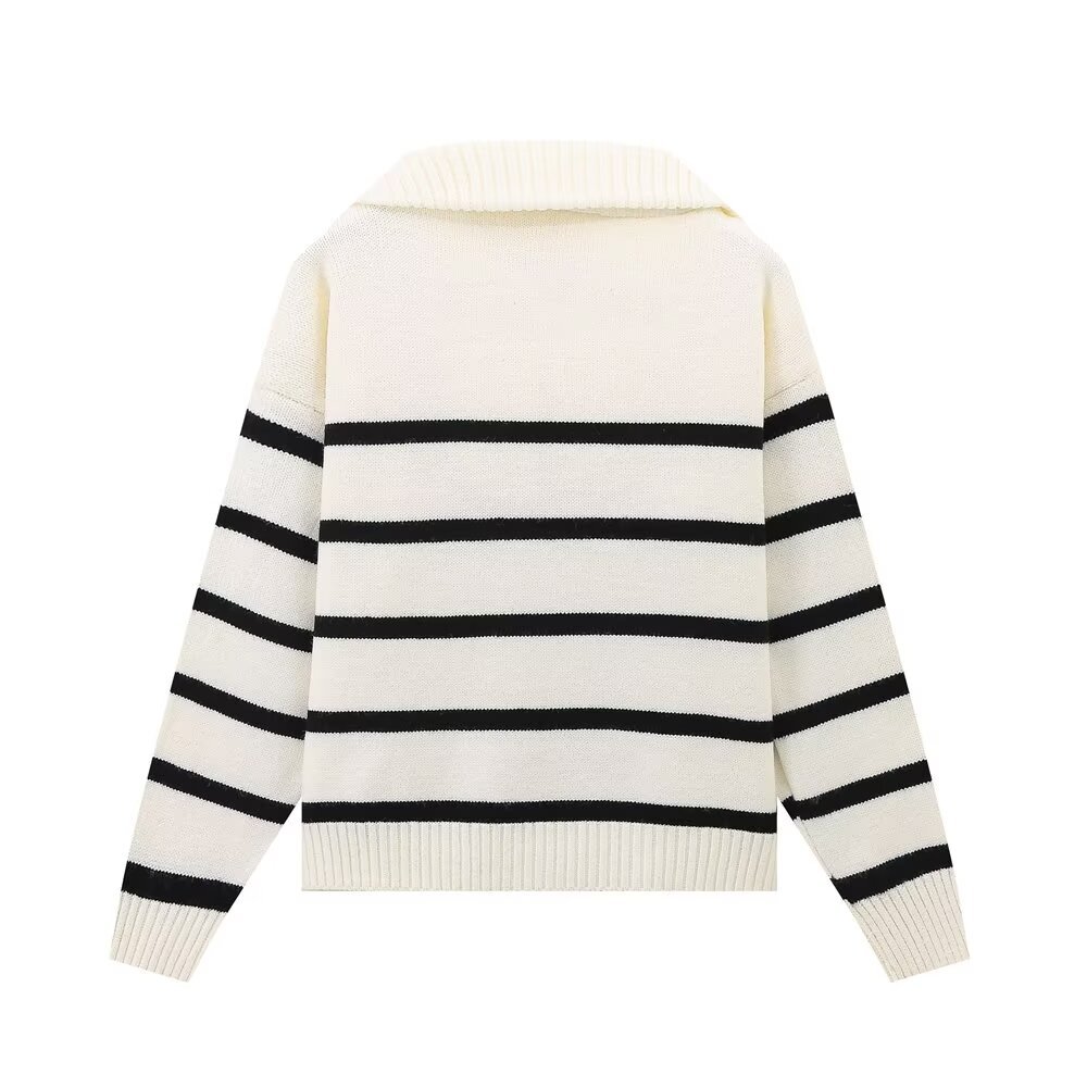 Home Products Fashion Sweater Striped Half-Zip Knitted Sweater – Classic Breton Style