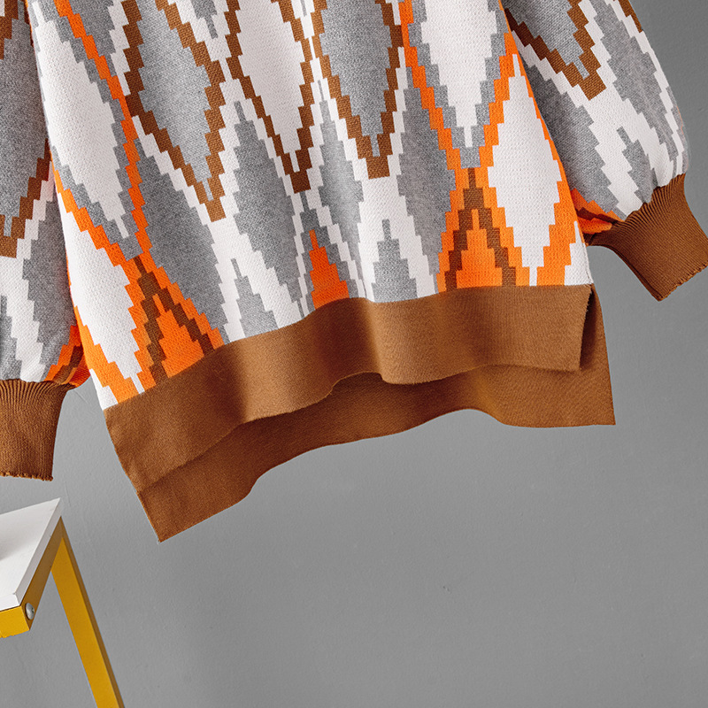 Home Products Fashion Sweater European and American wool suit Diamond jacquard multi-color sweater top knitted pants